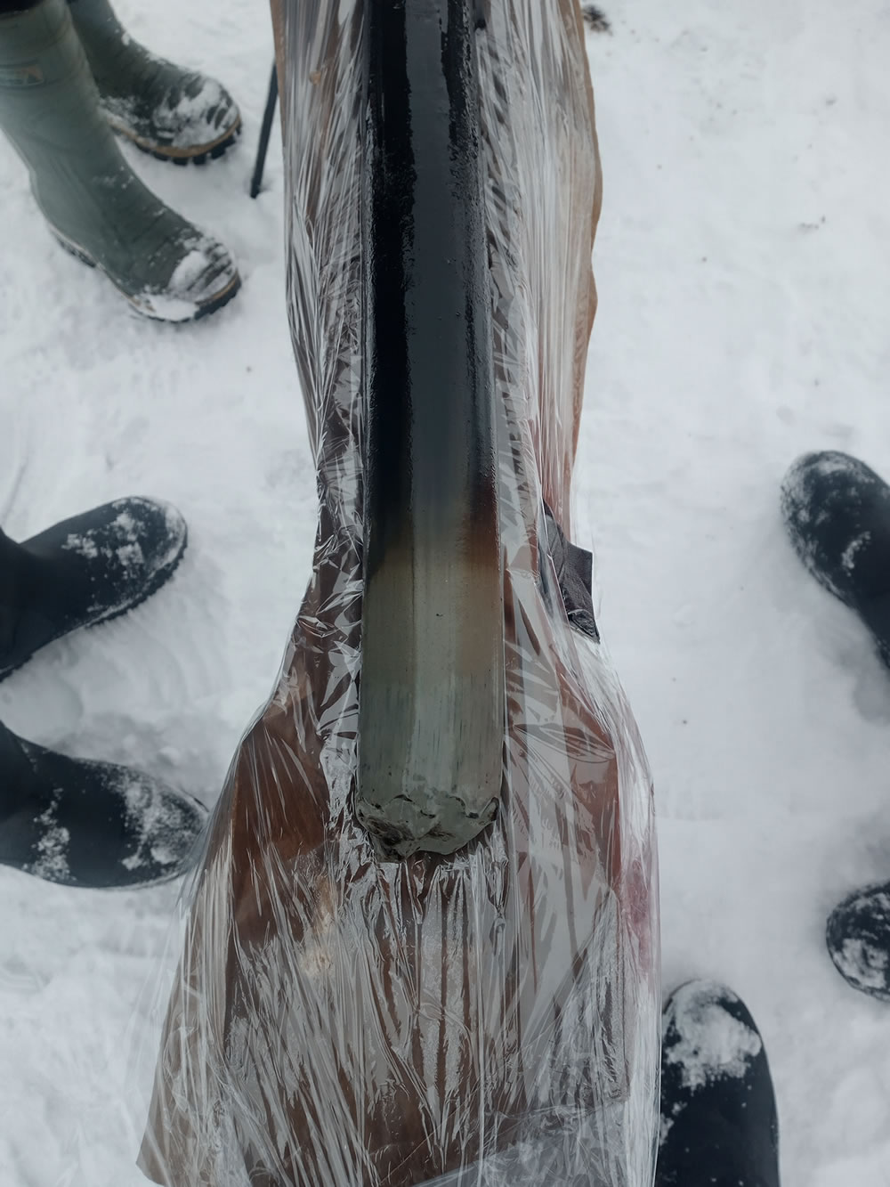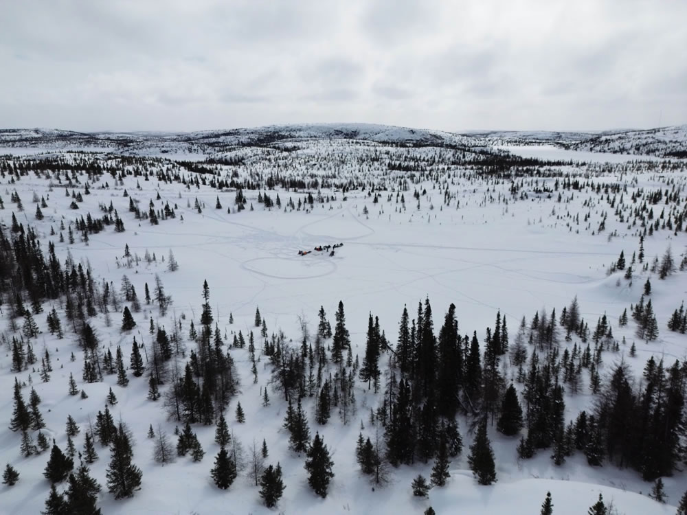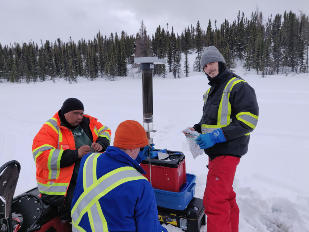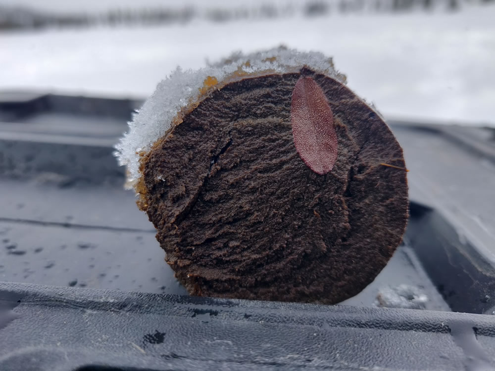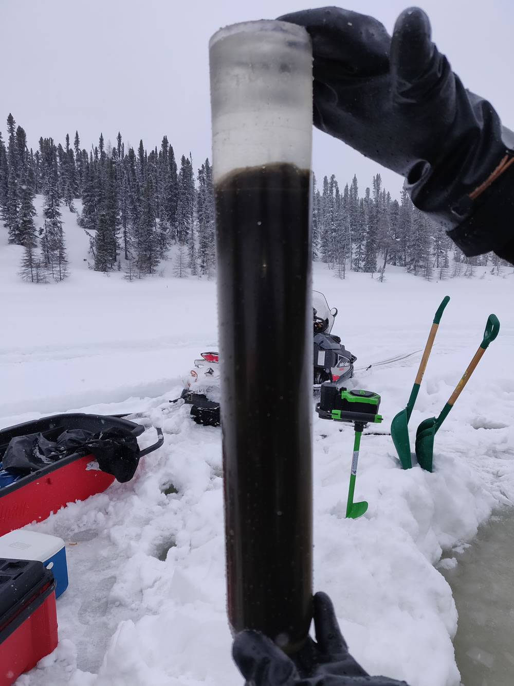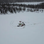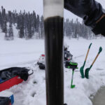 La campagne d’échantillonnage de sédiments lacustres de 2024 s’est déroulée à l’ouest du réservoir Caniapiscau, regroupant des membres de l’UQAT, de l’Université de Montpellier, de Ressources Naturelles Canada et de la communauté de Pessamit. Les prélèvements se sont opérés le long d’un gradient topographique et latitudinal allant de la pessière à lichen à la pessière à mousse. Six lacs, localisés entre 530 et 580 mètres d’altitude, ont été échantillonnés, chacun renfermant entre 1,7 et 3,50 mètres de sédiments. Les données collectées visent à élucider les processus écologiques et climatiques ayant contribué à l’évolution du paysage dans la région au cours de l’Holocène. Des datations, ainsi que des analyses de marqueurs géochimiques et biologiques tels que les charbons de bois, les grains de pollen et les restes de chironomes, seront réalisées sur les sédiments prélevés. L’objectif est de caractériser et de comprendre la relation entre la végétation, les incendies de forêt et le climat au cours des 6000 dernières années. Ce projet est mené par l’étudiant au doctorat sur mesure en sciences de l’environnement, Noé Moroy.