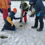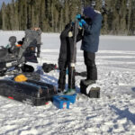 Une campagne de terrain effectuée début mars 2025 a été menée à bien grâce à la collaboration entre les chercheurs de Ressources Naturelles Canada via le Centre de Foresterie des Laurentides, la Communauté des Innus de Pessamit, l’Université du Québec en Abitibi-Témiscamingue, l’Université de Nantes et l’Université de Montpellier. Au total, 7 lacs ont été carottés dans la forêt mixte, dont certains dans des peuplements feuillus, et d’autres dans des peuplements d’épinettes noires et de pins gris. Ces peuplements de conifères boréaux, dissonants par rapport à la matrice mixte, représentent une valeur écologique et économique non négligeable. L’objectif est de comprendre l’origine et la persistance de ces peuplements d’épinettes noires et de pins gris dans la forêt mixte afin d’appréhender leur dynamique future dans le cadre des changements climatiques récents.