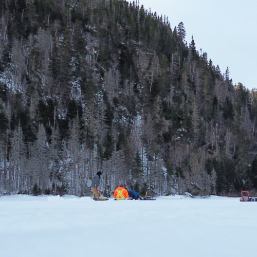 Campagne de carottage de lacs situés dans les régions des Hautes-Laurentides et de la Gaspésie au Québec.